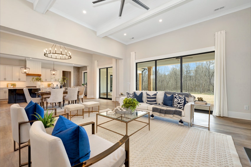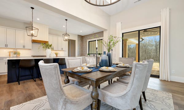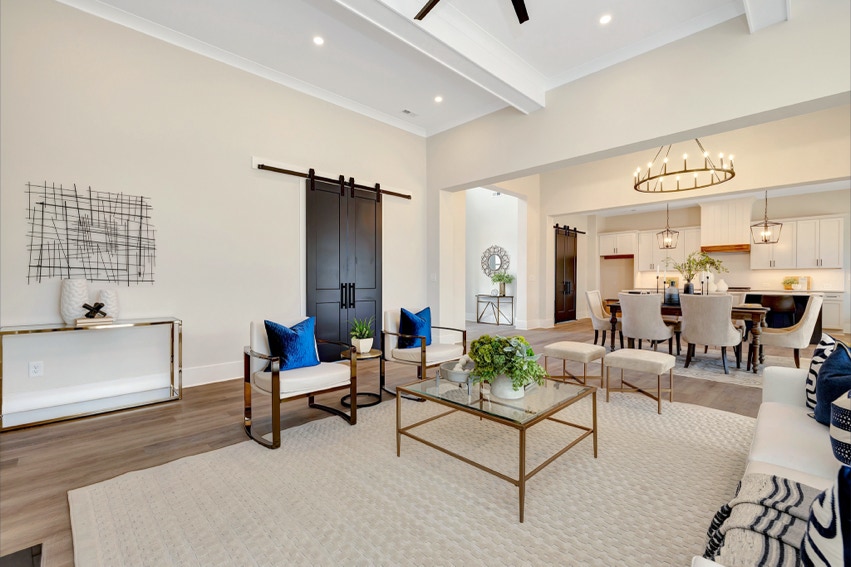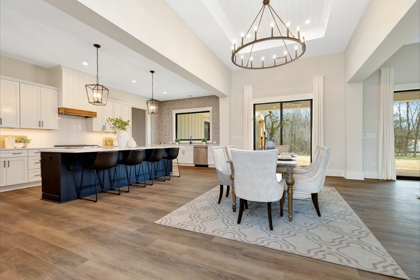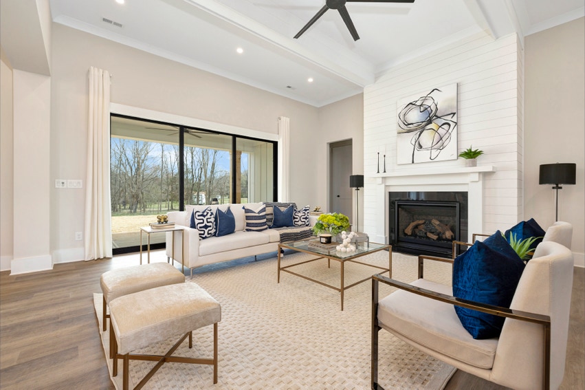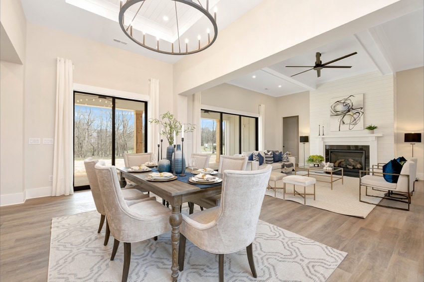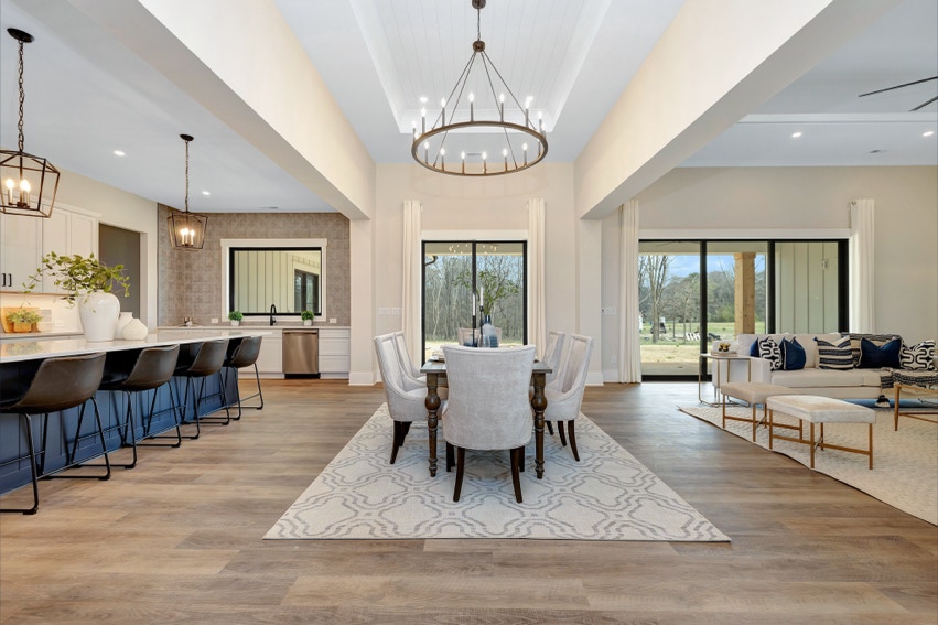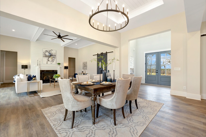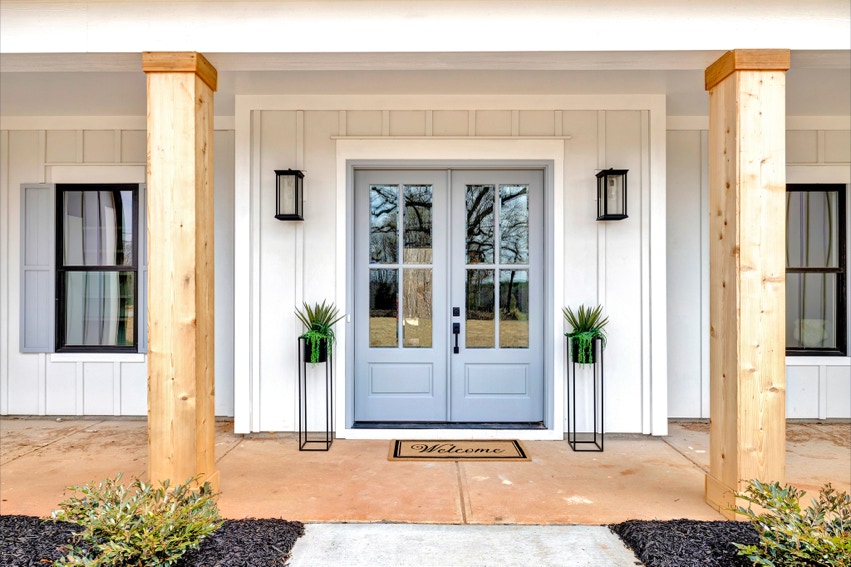 Charming Farmhouse ranch home. The open design boasts 12' & 13' ceilings in the living & dining areas. A large rear covered porch is prewired for TV, and, pre-plumbed for an outdoor kitchen. This home features many nice details & special touches, top-level quartz countertops, luxury LVP flooring throughout, walk-ing pantry, office and laundry room off the primary closet.