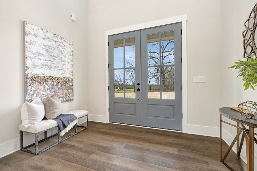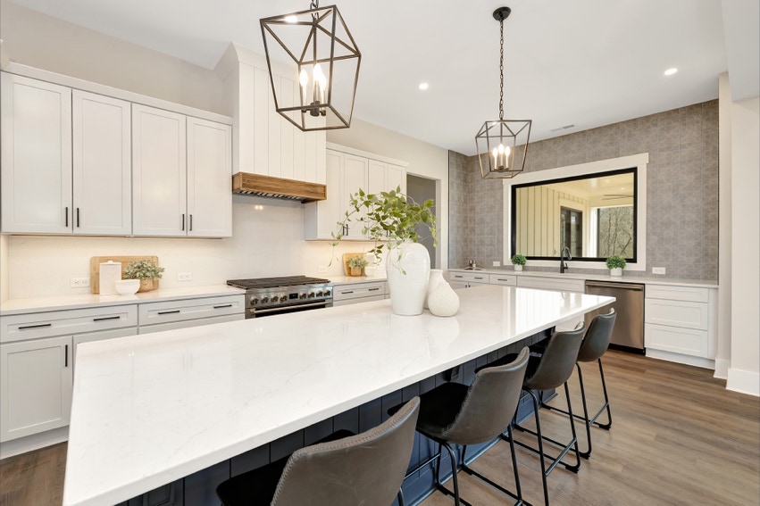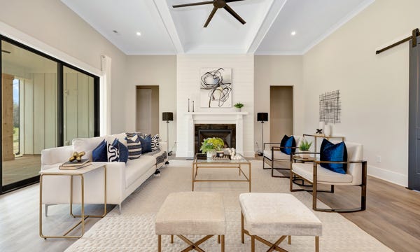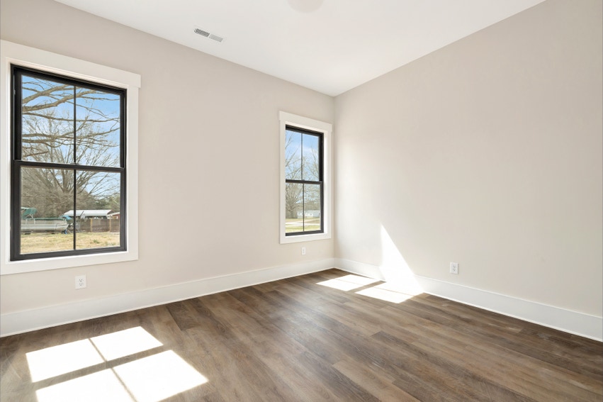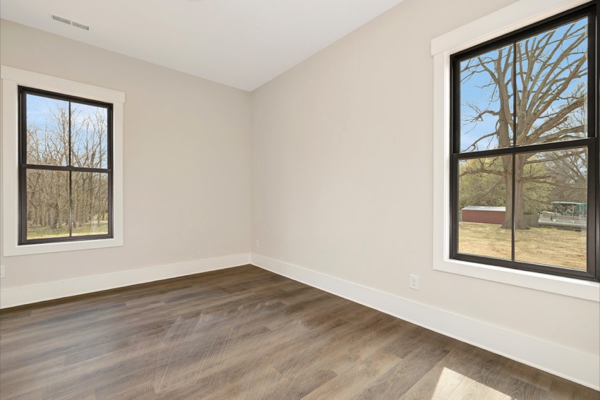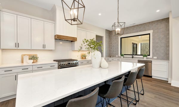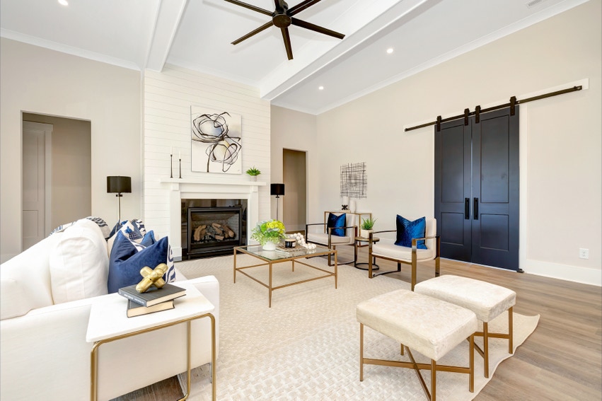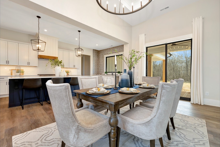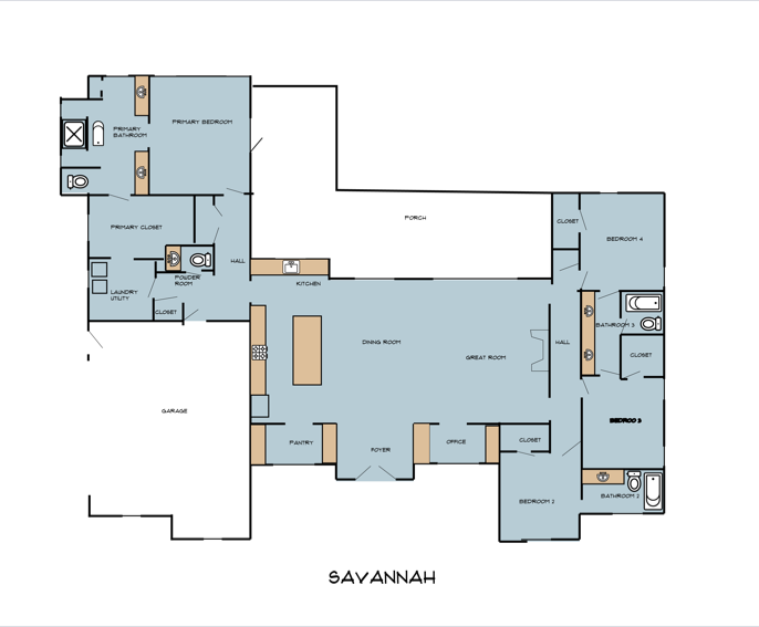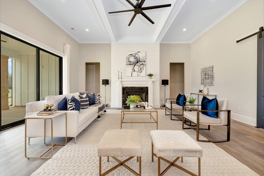 Charming Farmhouse ranch home. The open design boasts 12' & 13' ceilings in the living & dining areas. A large rear covered porch is prewired for TV, and, pre-plumbed for an outdoor kitchen. This home features many nice details & special touches, top-level quartz countertops, luxury LVP flooring throughout, walk-ing pantry, office and laundry room off the primary closet.